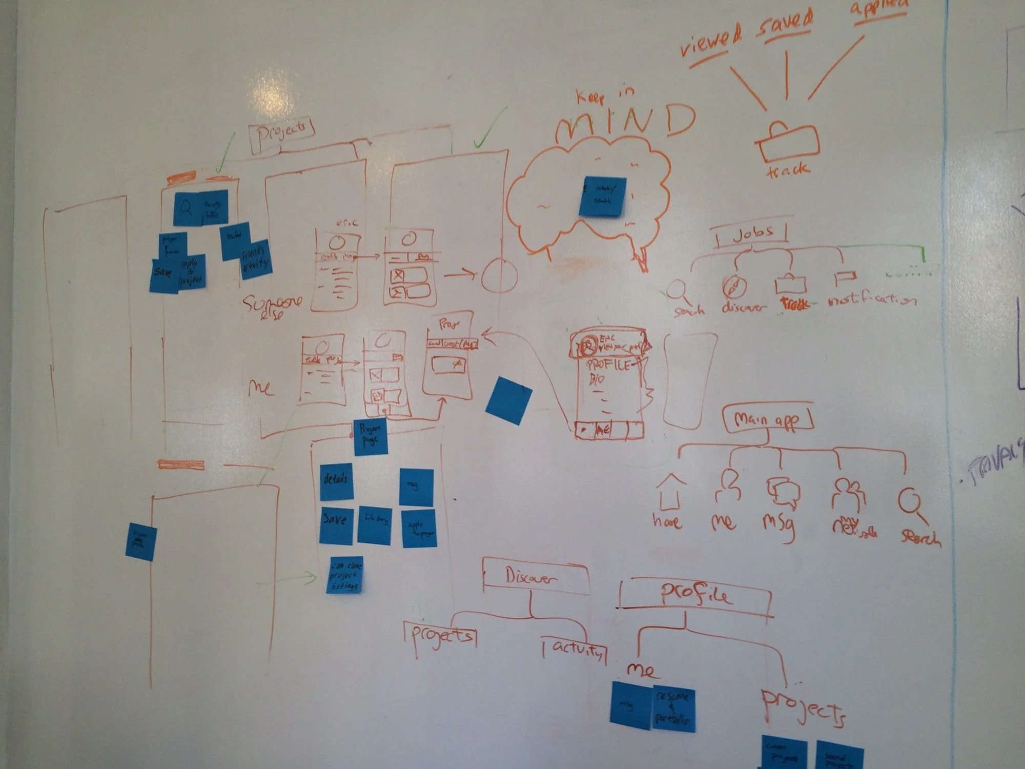 With any project, it is important to prioritize which features to work on first. Looking at our personas, we thought up features and listed them out in a MoSCoW chart, also known as a must, should, could, and would chart. Our MVP features were those in the must category, and included basic way to create, find an apply to a project. The should and could features included more advanced ways of managing and collaborating on a project. Finally, we decided against deciding any monetary features since this should be left to LinkedIn’s business development team.